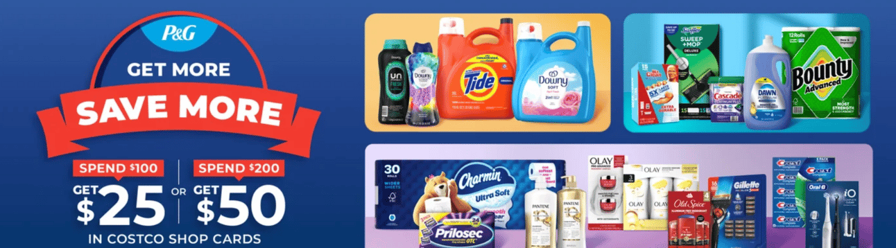 🪪 COSTCO P&G SHOP CARD PROMO: Spend $100 on select P&G products by Sept. 21 and get a free $25 Costco Shop Card, or $50 back if you spend $200.