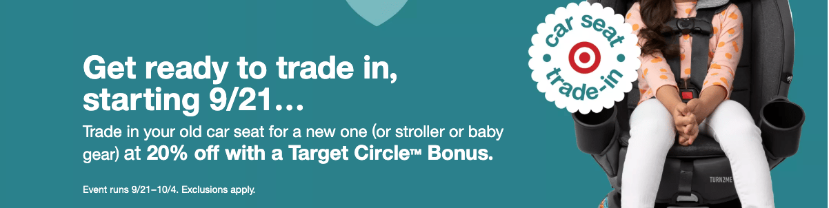 🍼 TRADE IN YOUR OLD CAR SEAT FOR $$$: Target has brought back their Car Seat Trade-In Event from last year where if you bring any old/expired seat to participating stores, you score back a 20% OFF coupon to use toward a new car seat, stroller, or select baby gear.
