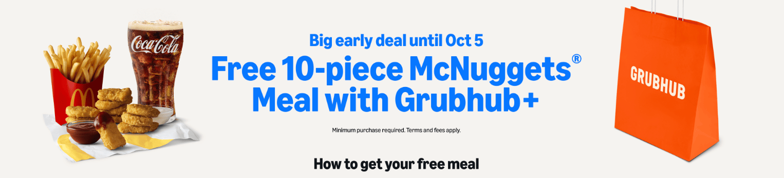 BONUS TIP: For anyone who loves a chicken nugget from McDonalds, Amazon is also offering a free 10 piece chicken nugget meal for any Prime Members who activate their free Grubhub+ membership and place a McDonald’s order that totals at least $20. (and that INCLUDES the nugget meal!)