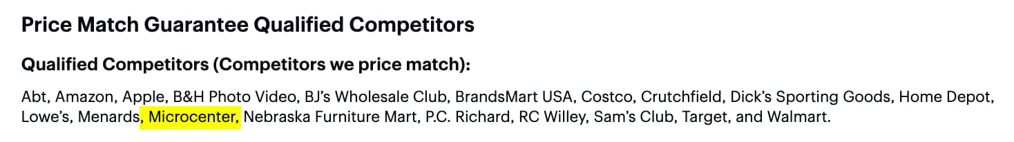 Best Buy’s price match policy