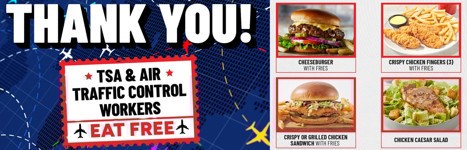 🍔 Free Meals at TGI Fridays: Through October 23, TGI Fridays is serving one free meal per day to TSA and air traffic control employees.