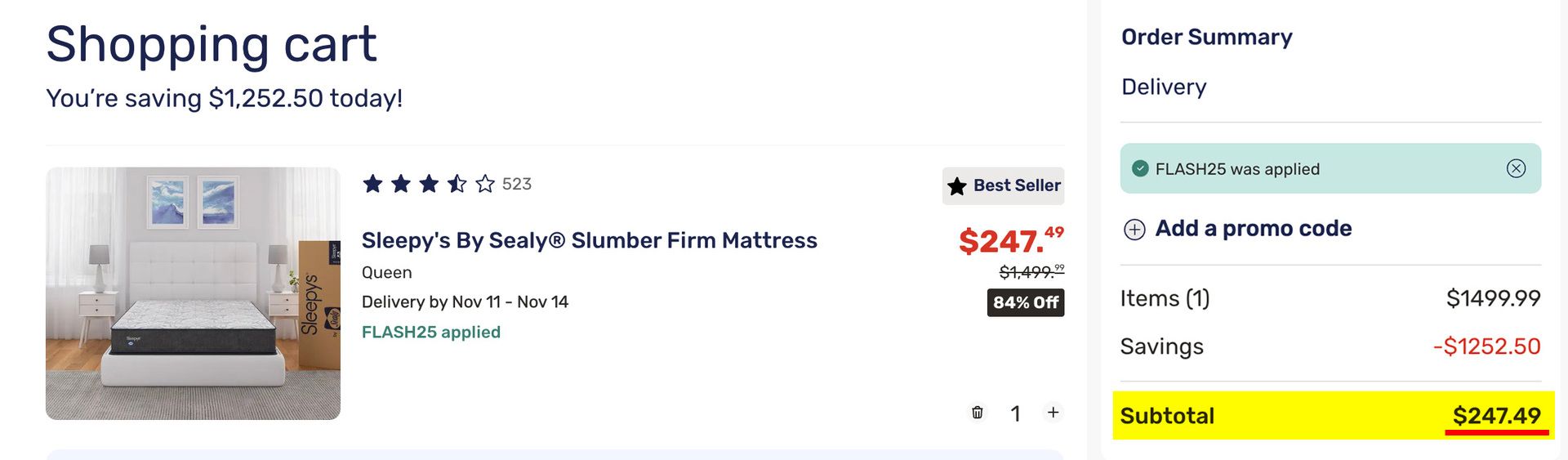 By using code “FLASH25” you’ll see prices as low as $247.49 (84% OFF!) on a Queen sized mattress with free shipping included!