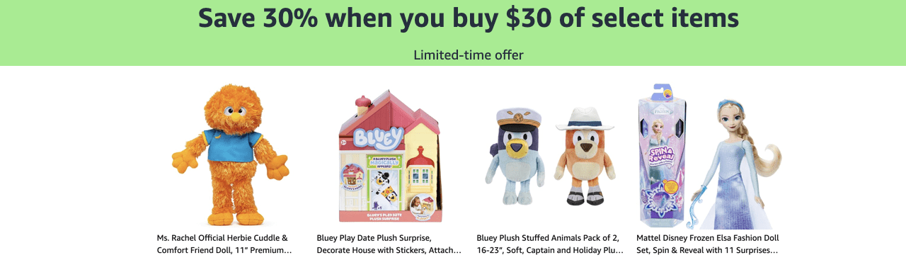 Save 30% when you buy $30 of select Toys (Perfectly timed for the holidays)