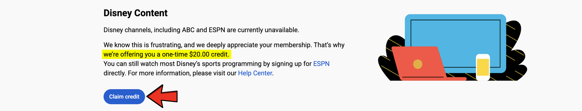 💵 Free $20 YouTube TV Credit: For anyone currently subscribed to YouTube TV, you may have heard about their current issues with Disney.