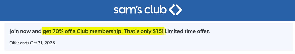 🪪 $15 Sam’s Club Membership: The huge Sam’s Club from last year has finally returned. For a limited time get a Sam’s Club Membership for just $15!